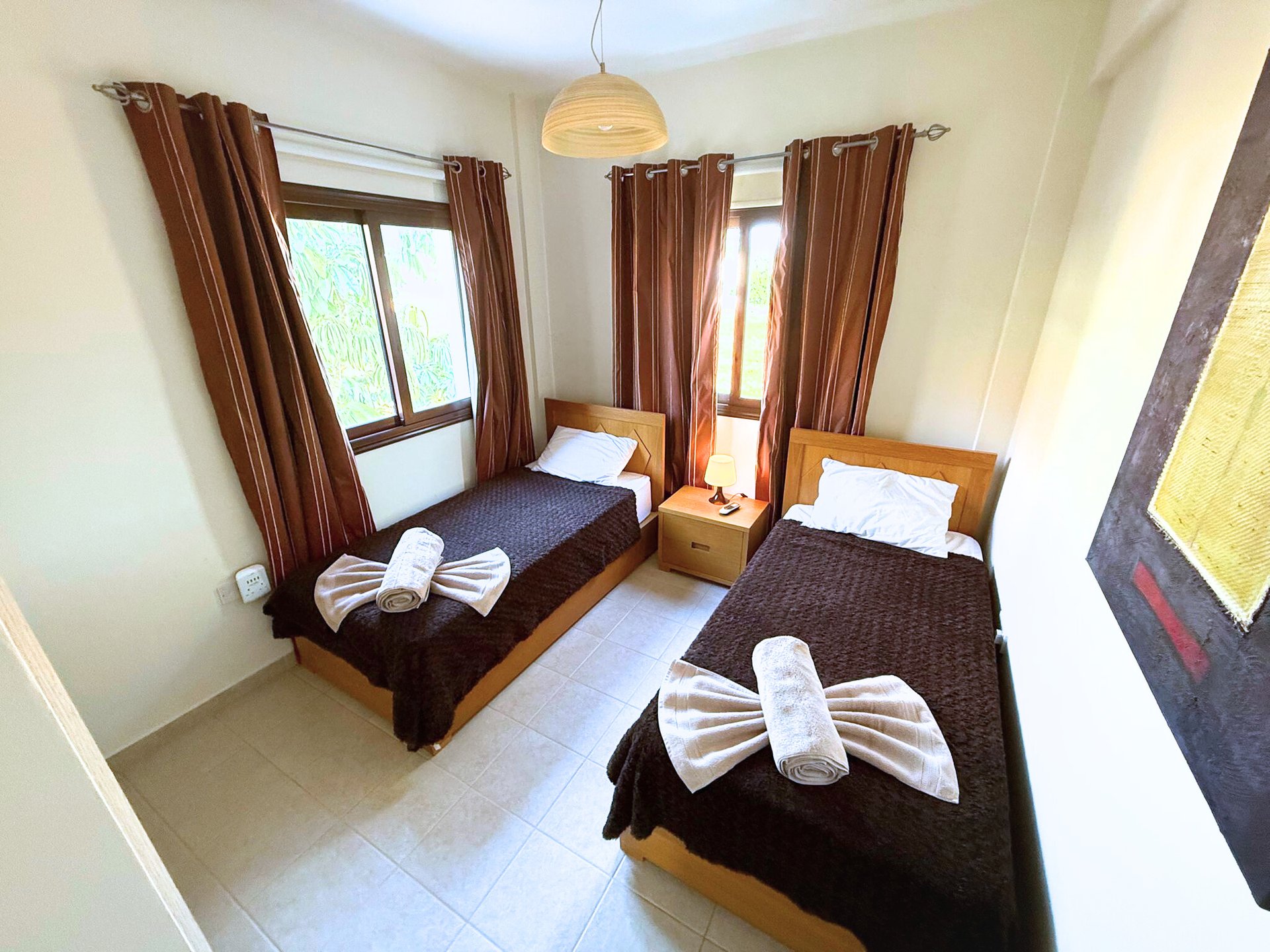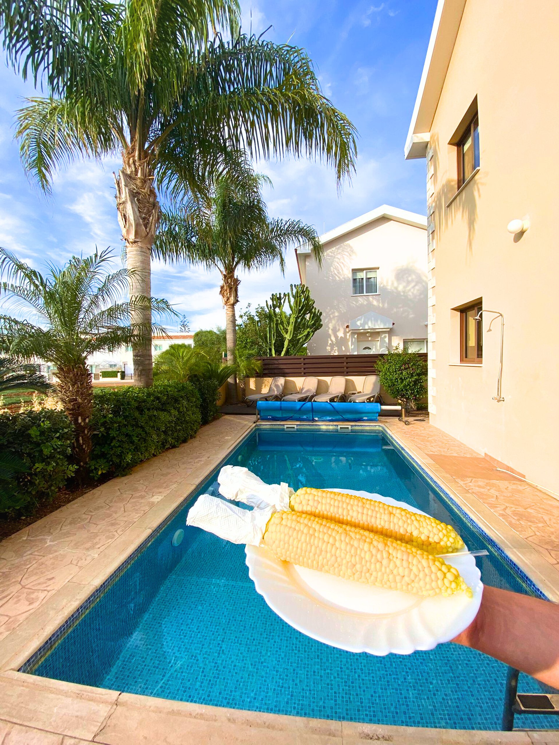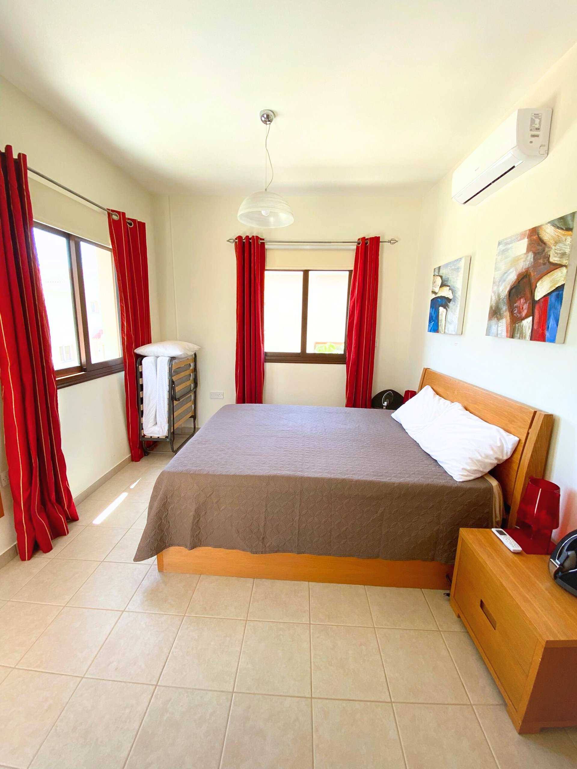 The villa offers guests 3 bedrooms with extra beds and can accommodate 8 guests and one child in a cot at a time.