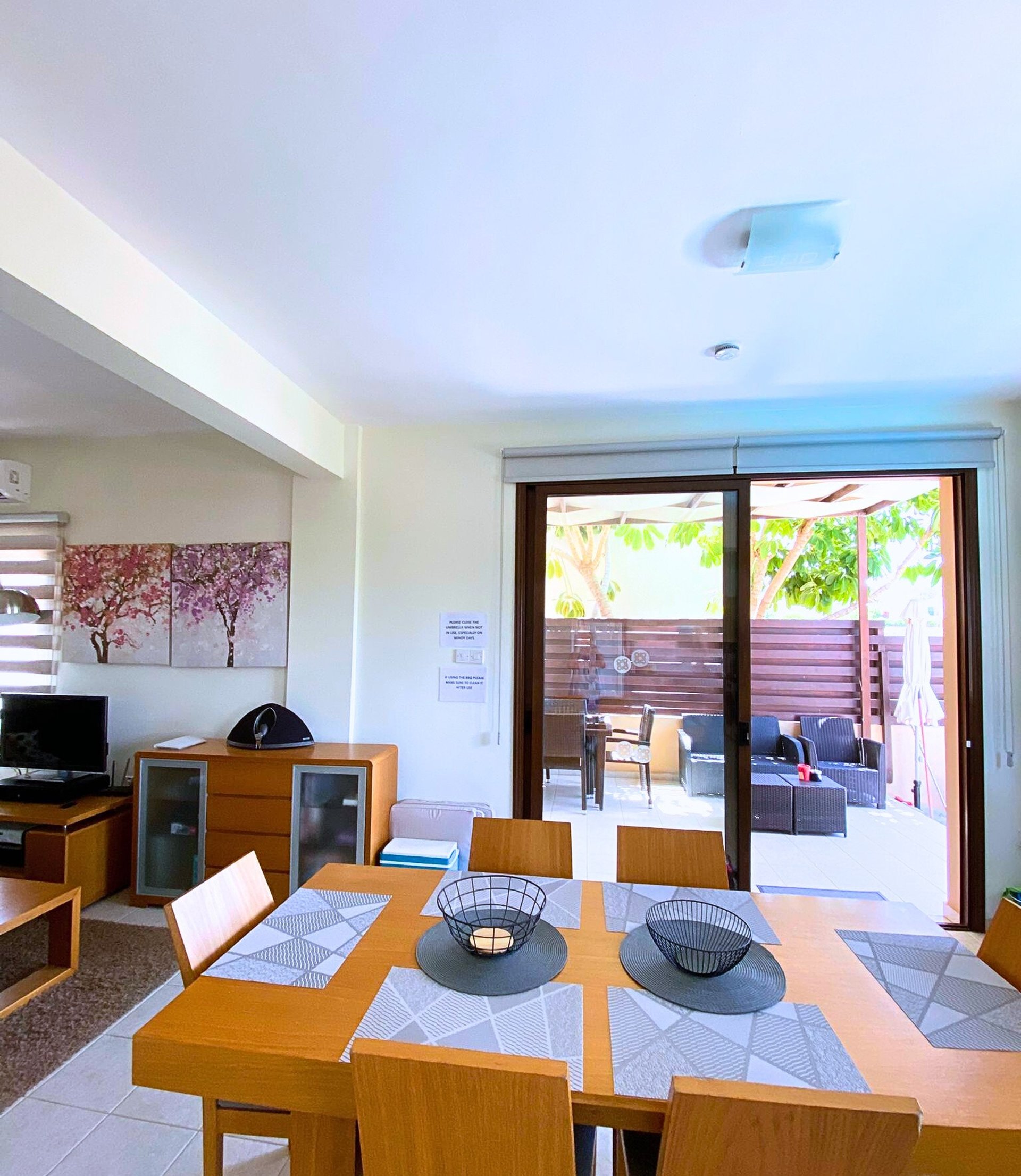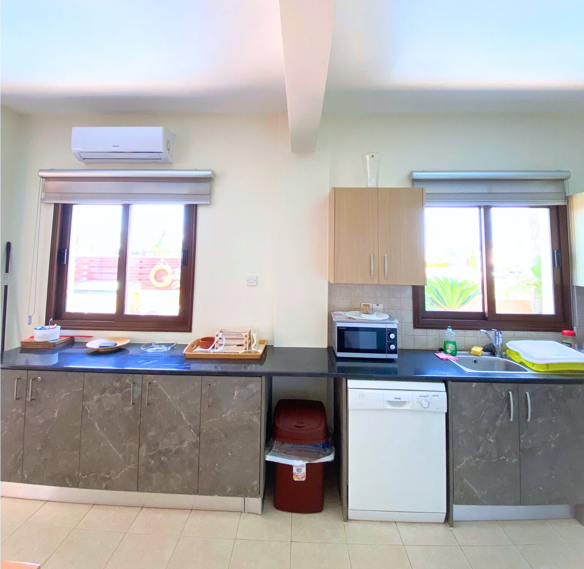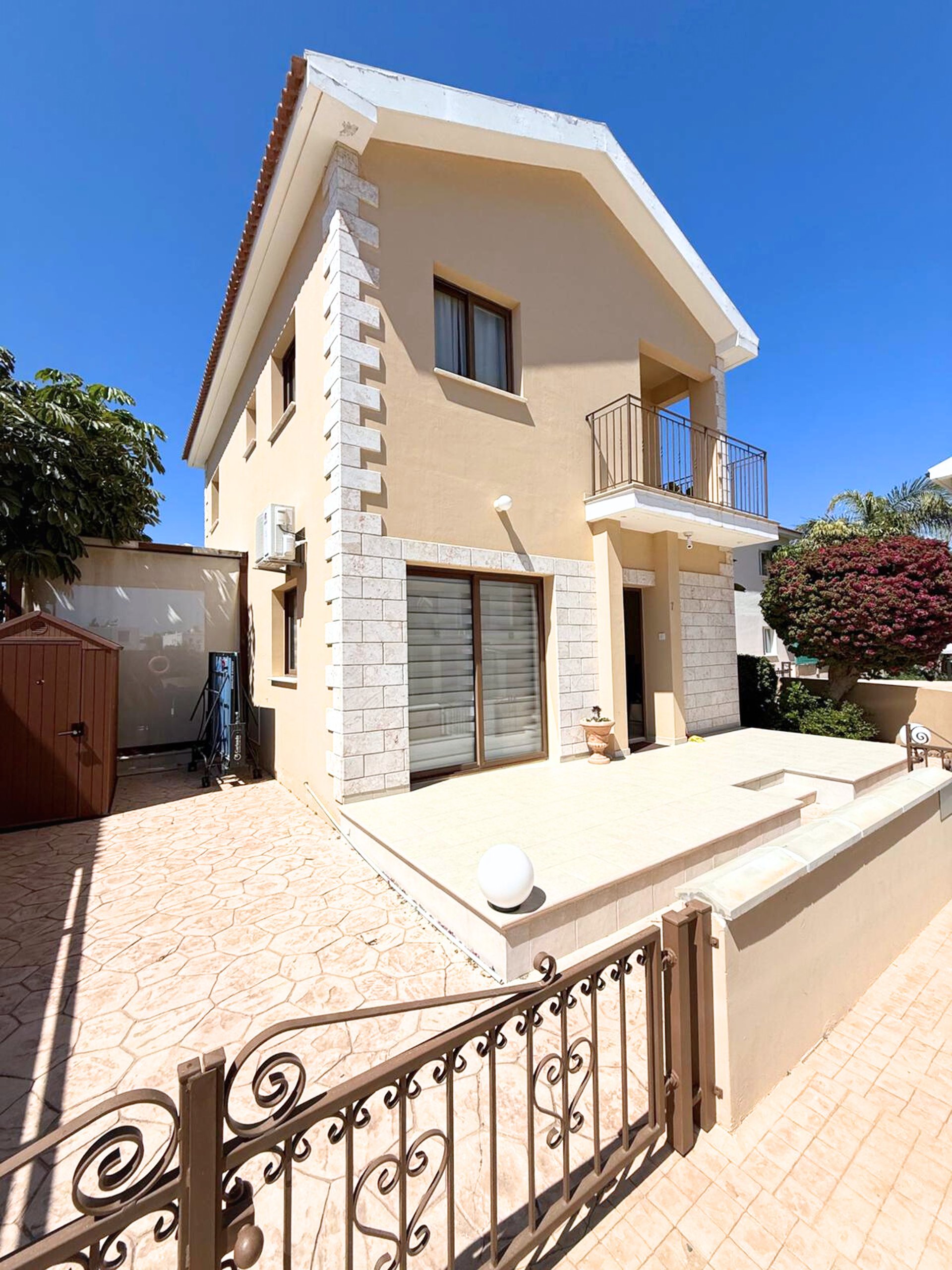 The villa offers guests 3 bedrooms with extra beds and can accommodate 8 guests and one child in a cot at a time.
