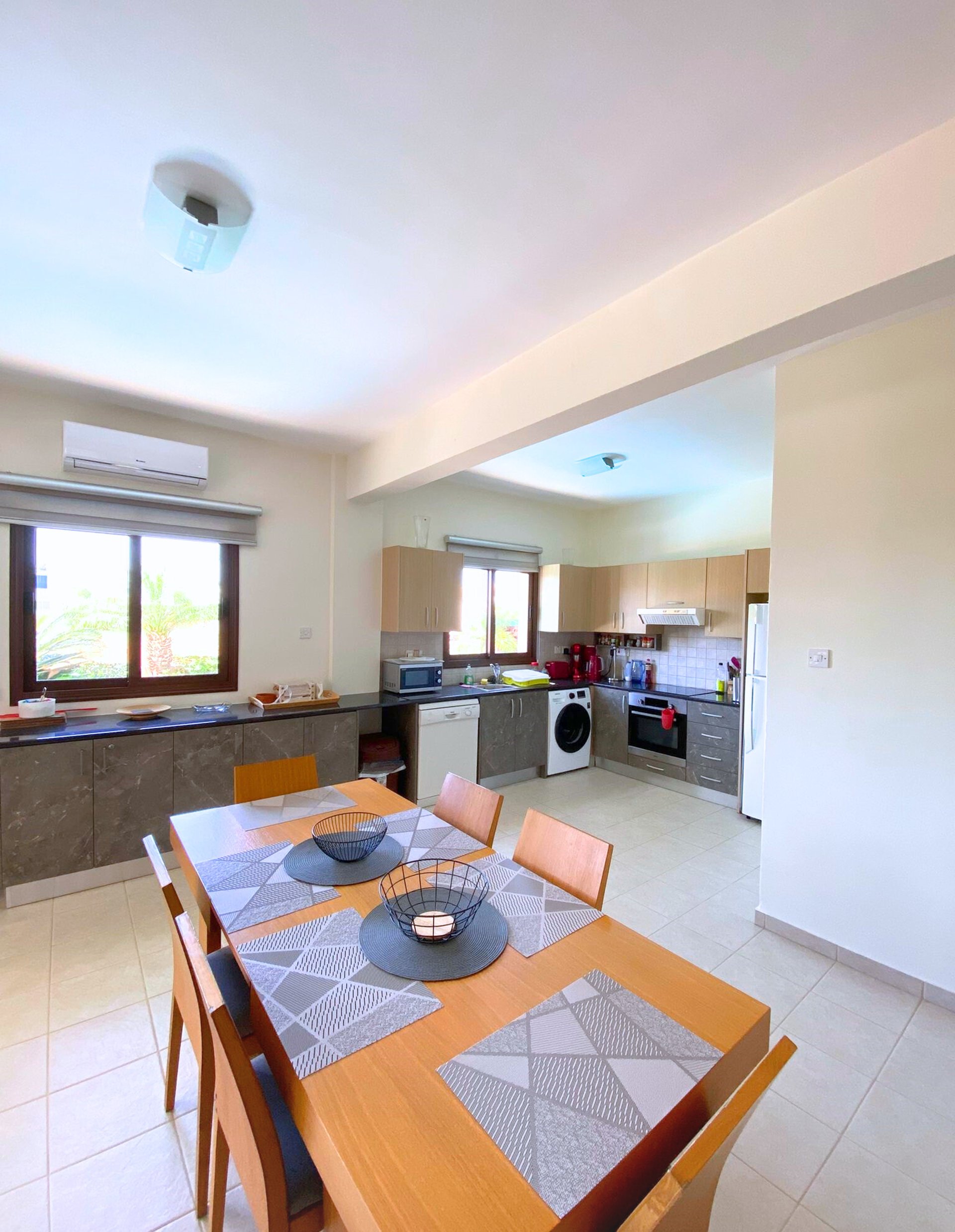 There are 2 bathrooms, a kitchen with a refrigerator, dishwasher, washing machine, coffee maker and other complete equipment, so you will feel like you are in your own kitchen. There is a large seating area in the living room.